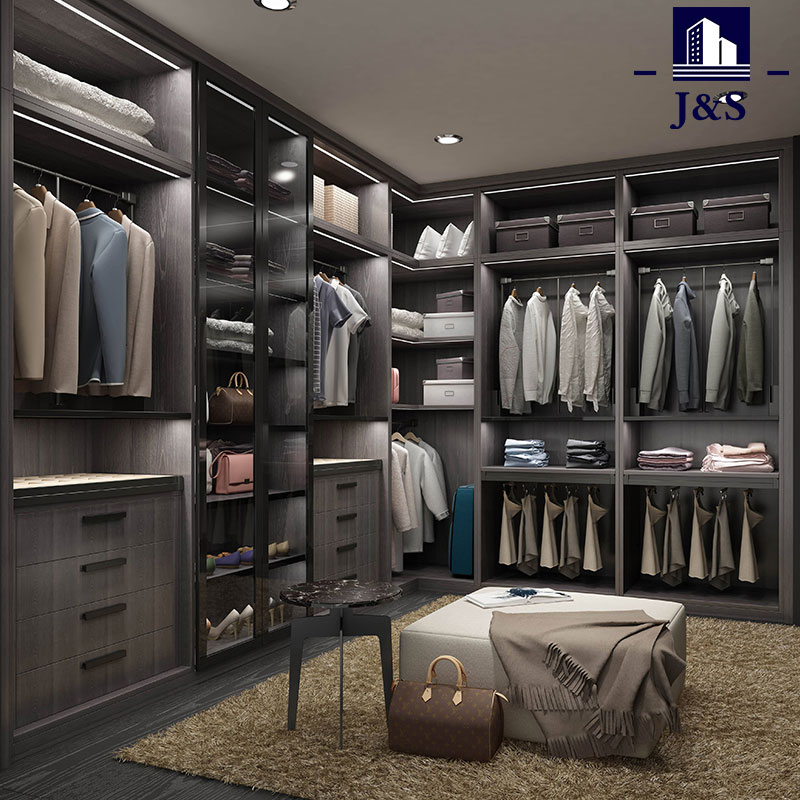 Ini adalah walk in closet desain bentuk U, ukurannya 3*3*3m, dapat disesuaikan.