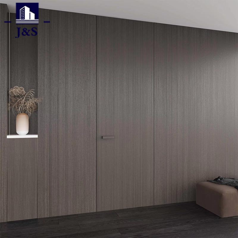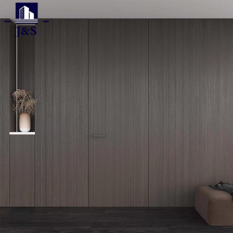Rangkaian Pintu Tersembunyi Khusus Seluruh Rumah ini menampilkan desain khusus seluruh rumah premium, berpadu sempurna dengan ruang tamu modern. Pintunya menampilkan finishing serat kayu gelap canggih yang selaras sempurna dengan lantai gelap dan aksen dinding minimalis, meningkatkan estetika keseluruhan dengan kemewahan yang bersahaja. Keunggulannya terletak pada perangkat kerasnya yang indah: pegangan pintu geometris yang ramping menawarkan tekstur hitam matte dengan detail yang presisi, menawarkan pegangan yang nyaman dan sentuhan keanggunan industri. Sementara itu, engsel tersembunyi tugas berat memastikan pengoperasian yang sangat mulus namun tetap tersembunyi sepenuhnya, mewujudkan daya tahan dan kecerdikan minimalis. Dirancang untuk pemilik rumah muda yang menginginkan perpaduan gaya dan fungsionalitas, desain ini menghilangkan kusen pintu yang menghalangi, menciptakan lingkungan terbuka dan rapi. Ini adalah pilihan utama untuk apartemen modern, menggabungkan integrasi visual tanpa batas dengan keahlian berkualitas tinggi untuk mendefinisikan kembali kehidupan kontemporer.